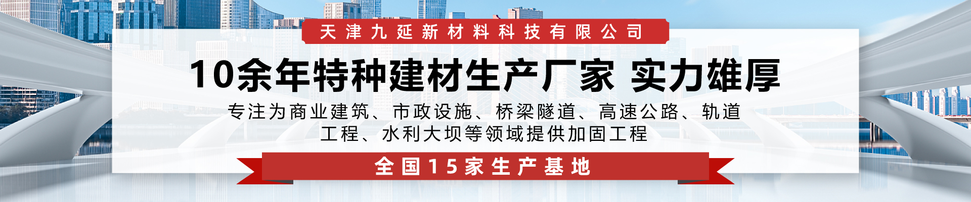 天津九延新材料科技有限公司主营高延性混凝土、uhpc超高性能混凝土、stc超高韧性混凝土等多种新型加固材料,在全国有15个工厂,可以就近安排发货!所有产品均为厂家直供,没有经销商,工厂直达工地,没有中间商赚差价。一件也是批发价!